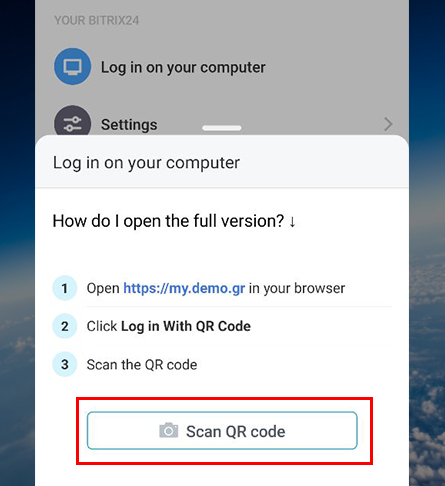 Πρώτο μας βήμα είναι να ανοίξουμε την desktop εφαρμογή και να πατήσουμε στο QR LOGIN