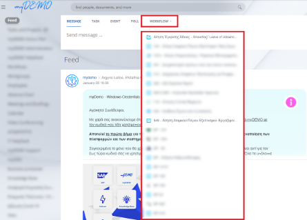 Απο τη λίστα που μας ανοίγει μπορούμε να βρούμε όλες τις εταιρικές διαδικασίες που συμμετέχουμε.